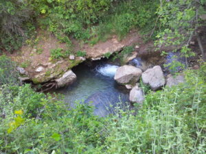 ליד עין סתר, עוצרים להפסקה. עד לכאן זורמים מים לכל אורך הערוץ. מכאן נעלמים המים תחת הערוץ הסלעי ומופיעים מידי פעם בגבים או בנביעות זורמות.