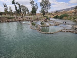 פוסעים לאורך הטיילת עד לסכר אלומות. בצידו השני של הירדן קבוצת דגניה א’, הקבוצה הראשונה ואב הטיפוס לדגם ההתיישבות הנקרא כיום קיבוץ. דגניה, נקראת “אם הקבוצות והקיבוצים”.