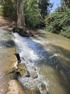 מי הירקון העליון, טבעיים ונקיים מגיעים ממקורות הירקון ויורדים במפל אל מפגש הנחלים. המים המגיעים מנחל קנה עברו טיהור ראשוני במתקן שפכים ואינם ראויים לרחצה ולשתייה. מותר לרחוץ במים הטבעיים רק במי הירקון העליון, מעל המפל. חוצים בחזרה לגדה הדרומית וממשיכים עד לטחנת “אבו-רבאח” היא נקודת הסיום של המקטע.