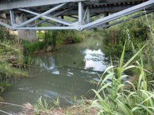 יוצאים מהשער המזרחי של הגן. עוברים מתחת למסילת הרכבת לראש העין, שחוצה את הירקון. לצד גשר הרכבת אפשר לראות פילבוקס – עמדת שמירה מהתקופה הבריטית לאבטחת הגשר מפורעים ערבים.