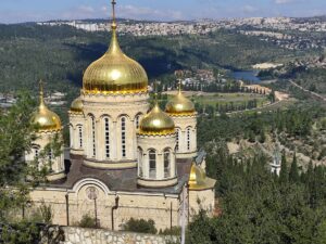 עולים במדרגות “גן עדן” ומגיעים אל עין כרם ואל ירושלים עיר הקודש. שכונת עין כרם הינה כפר עתיק וקסום השוכן על מדרונות הרים. עין כרם מיוחדת בזכות אתריה הקדושים לנצרות, בתיה העתיקים והנוף הציורי. על פי מסורות הנוצרים, בכנסיית “יוחנן בהרים”, שוכנת מערה בה נולד יוחנן המטביל. מרים הבתולה, אם ישוע, שתתה ממי המעיין, שבמרכז הכפר. כנסיית “הביקור”, הוקמה לזכר ביקורה של מרים אם ישוע את אלישבע אם יוחנן המטביל בזמן הריונן. בין סמטאות הכפר פזורות גלריות וחנויות. אפשר למצוא גם בתי קפה וגלידריה.