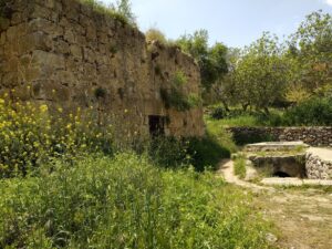 מהבריכה התת-קרקעית יוצאת ניקבה באורך של כ-17 מטרים המובילה את המים לבריכה אגירה חיצונית פתוחה. מהבריכה החיצונית זרמו המים בתעלות אל חלקות השדה המעובדות. סמוך לבריכה עומד מבנה מהתקופה העות’מאנית ששימש לתפילה. בקיר הדרומי, גומחה– מח’ראב, הפונה לכוון מכה.
