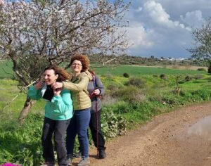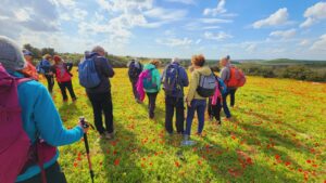 יורדים ליד “מחשופי קירטון לבנים” אל הכביש המחבר את בית גוברין, אל בית ניר וחוצים אותו.