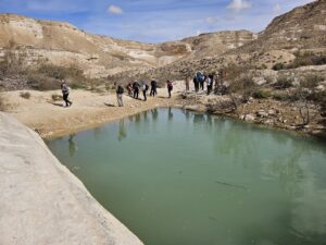 עוזבים את שביל ישראל ויוצאים צפונה אל עין זיק. הדרך אמנם עבירה לרכב שטח אך עשויה להיות בוצית, בזכות המים מעין שביב.. בעין זיק יחכו לנו רכבי השטח לנסיעה של 40 דקות אל מדרשת שדה בוקר.