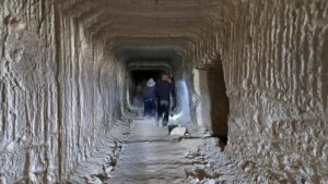 בצלע ההר, נחצבו שתי מנהרות לעומק הסלע. במשך שנים נפוצו סיפורים ואגדות על מטרתן. בפועל היה זה ניסיון לא מוצלח ליצור מאגרי נפט גולמי לשעת חירום. הסלע לא היה אטום והנפט חלחל אל מעבה ההר.