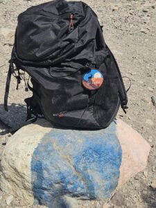 אבן עגולה בצבעי שביל ישראל מסמלת את הקצה או את ההתחלה של שביל ישראל.