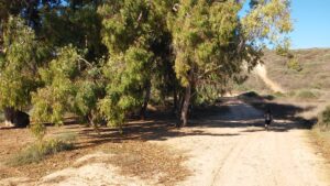 ממשיכים בשביל מערבה. אחרי 150 מטרים פוגשים חורשת אקליפטוסים שקטה ומצלה, המתאימה להפסקת אוכל. (2)